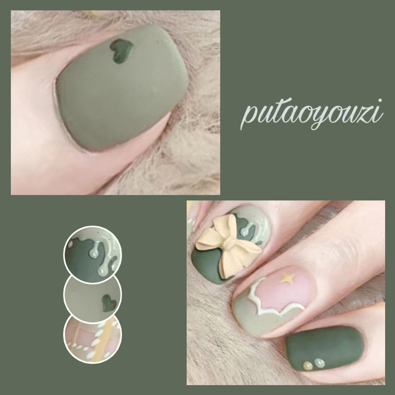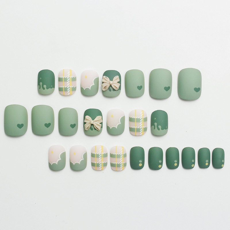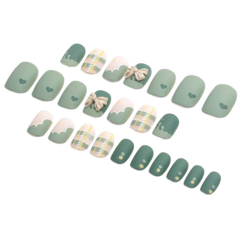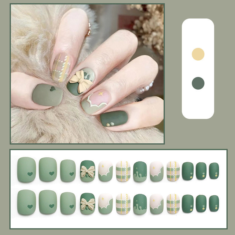 📚 2026年新款儿童美甲穿戴甲高级感短款秋季抹茶奶盖24片假指甲贴片