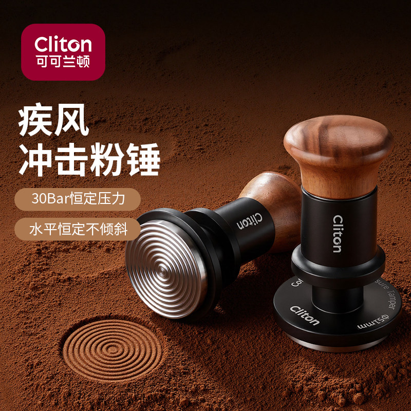 📚 Cliton恒力压粉锤冲击自动回弹意式咖啡机配件布粉原力51mm压粉器