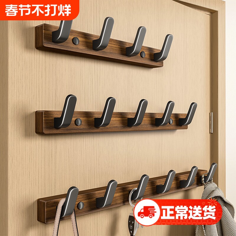 📚 门后挂钩黑胡桃木挂衣架墙上壁挂免打孔玄关钥匙入户衣钩上墙墙面