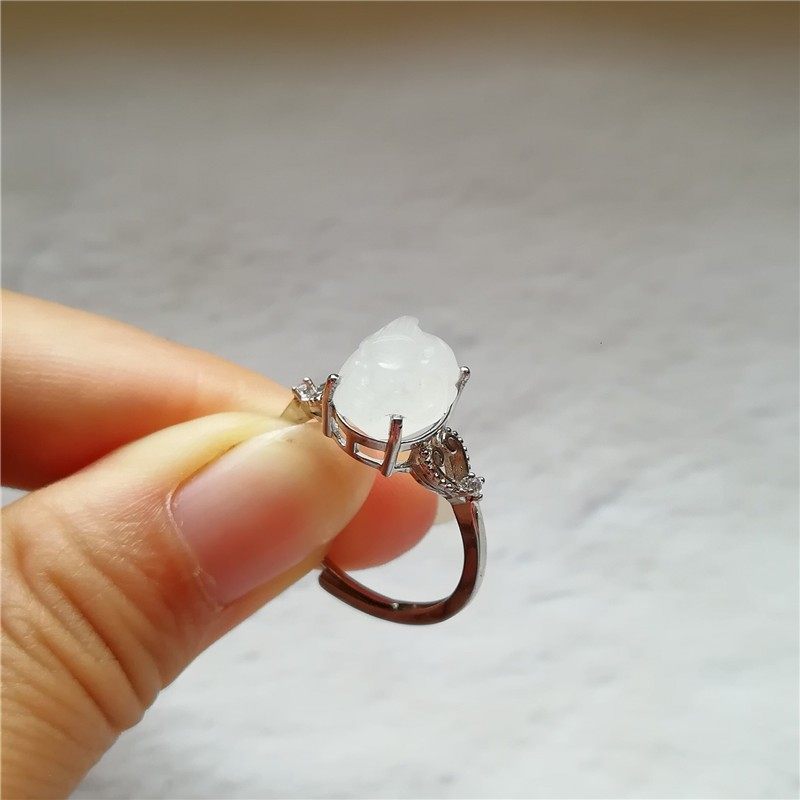 📚 收藏天然南阳独山玉貔貅戒指925戒面和田翡翠紫云母琥珀珠宝秒杀