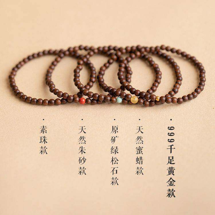 📚 正宗檀手链复古风女高油高密老料顺纹单圈佛珠檀香木手串金丝檀