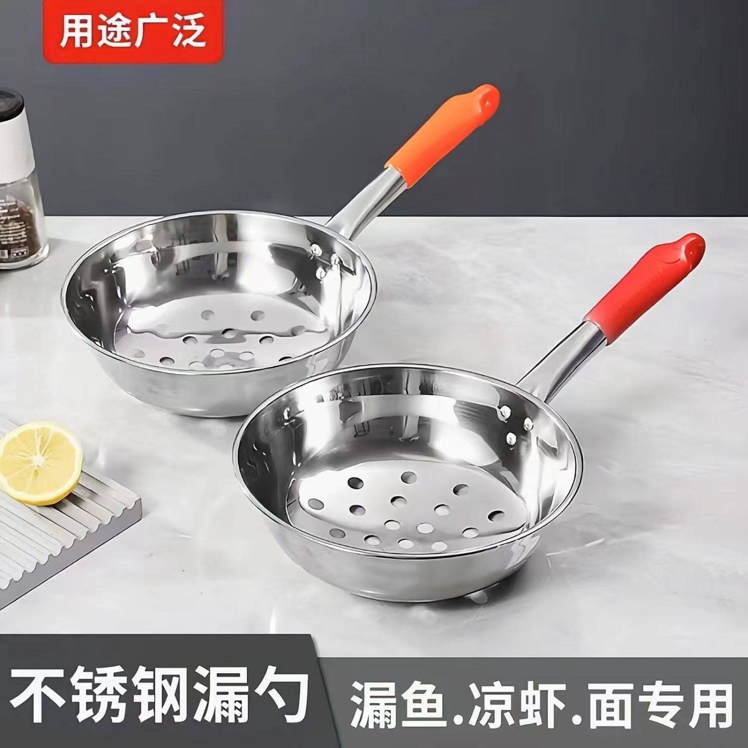 📚 304不锈钢疙瘩汤漏勺虾勺凉虾多功能漏瓢手工酸辣粉家用特大孔勺