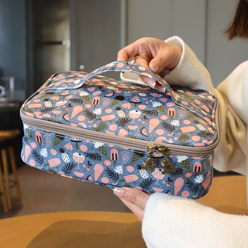 📚 小学生四格五格扁平饭盒袋防水保温便当包手拎卡通儿童分格餐盘袋