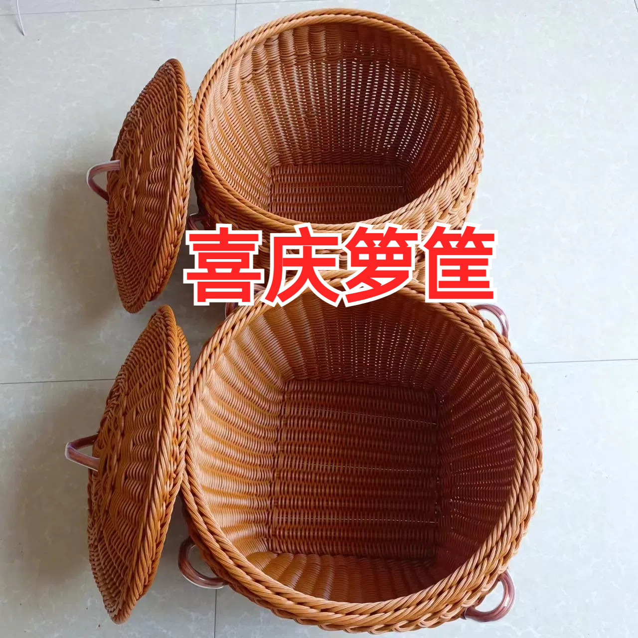 📚 精选喜庆箩筐藤编大号拜神筐手工扁担筐一对乔迁结婚新房家用带盖