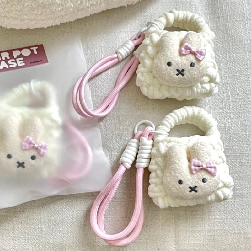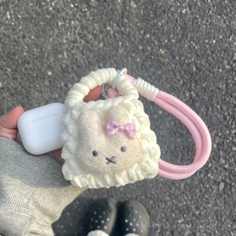 📚 可爱兔子耳机包零钱包小红书同款防摔保护套毛绒迷你收纳袋包挂件