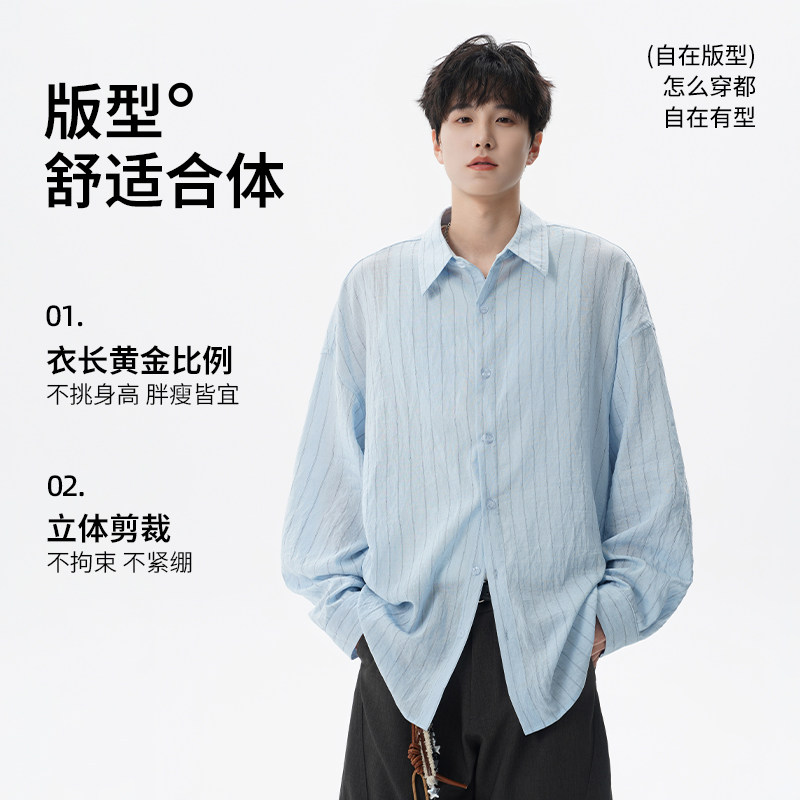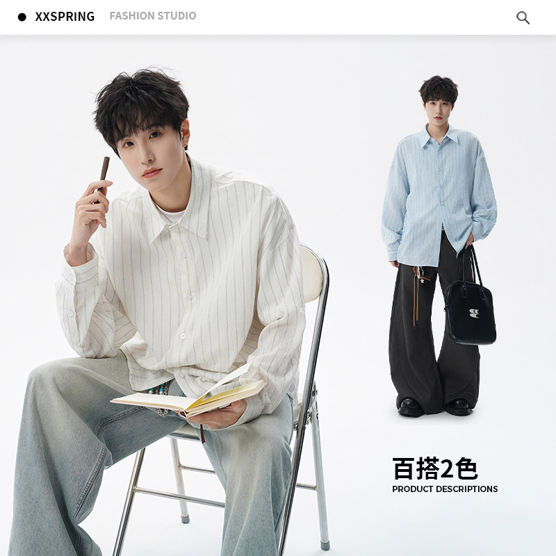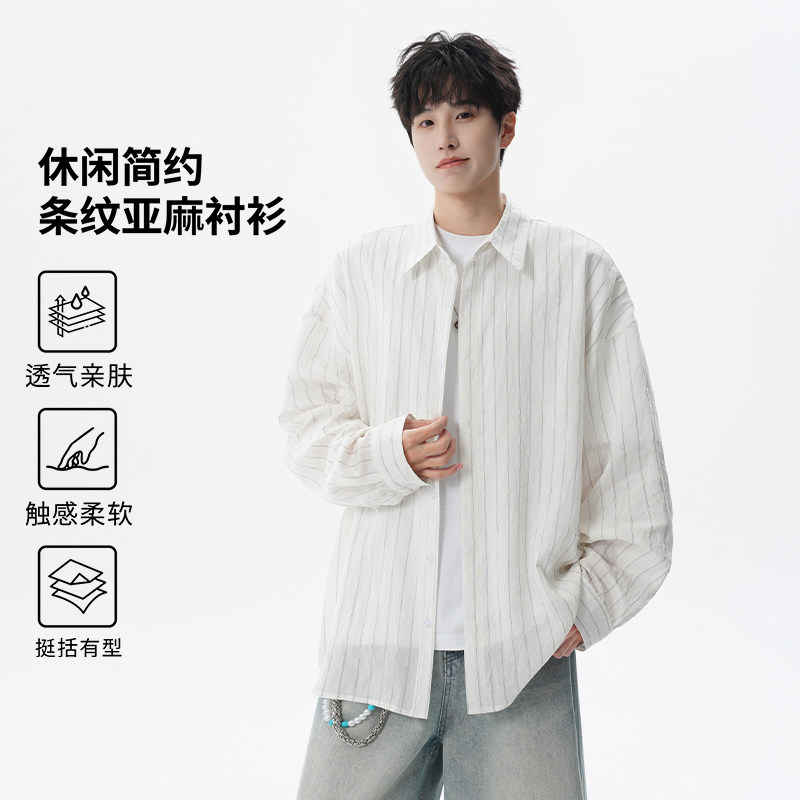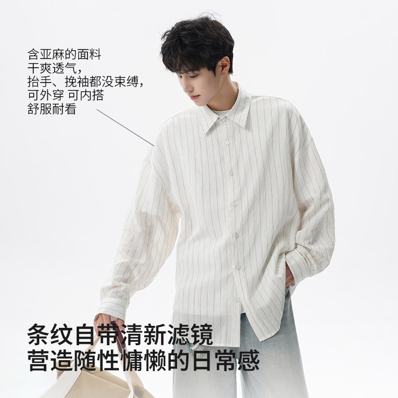 📚 迈特优高级感美式条纹白色长袖衬衫男女春秋休闲通勤宽松内搭衬衣