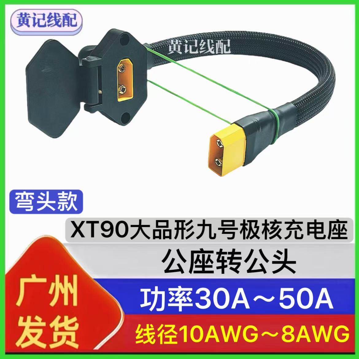 📚 XT90大品形九号充电公座转公头输出XT90充电口弯头款