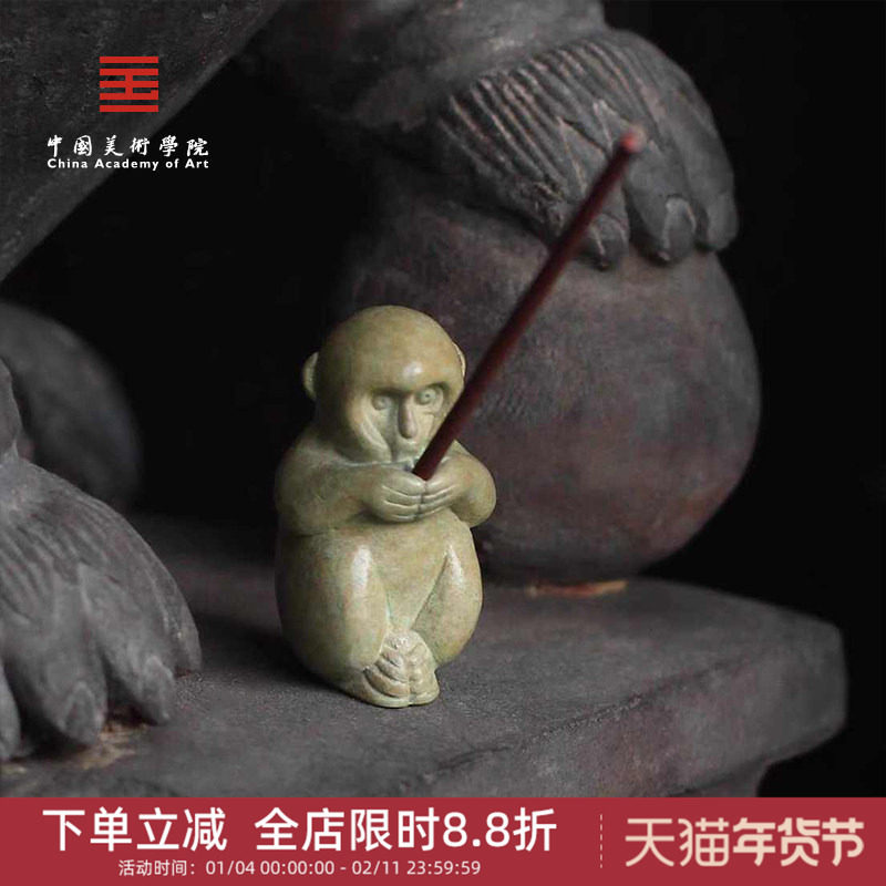 📚 中国美术学院文创小猴子线香青铜摆件茶宠桌面香插爸爸生日礼物