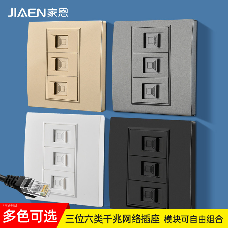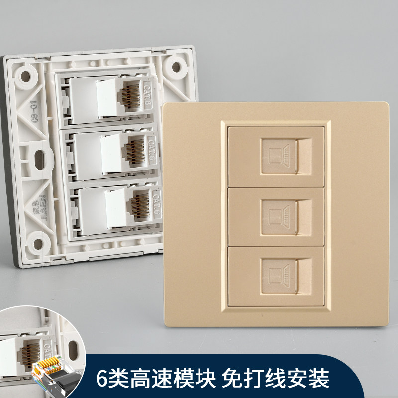 📚 暗装86型三位网络网线插座六类千兆网口水晶头直通式电脑水晶头口