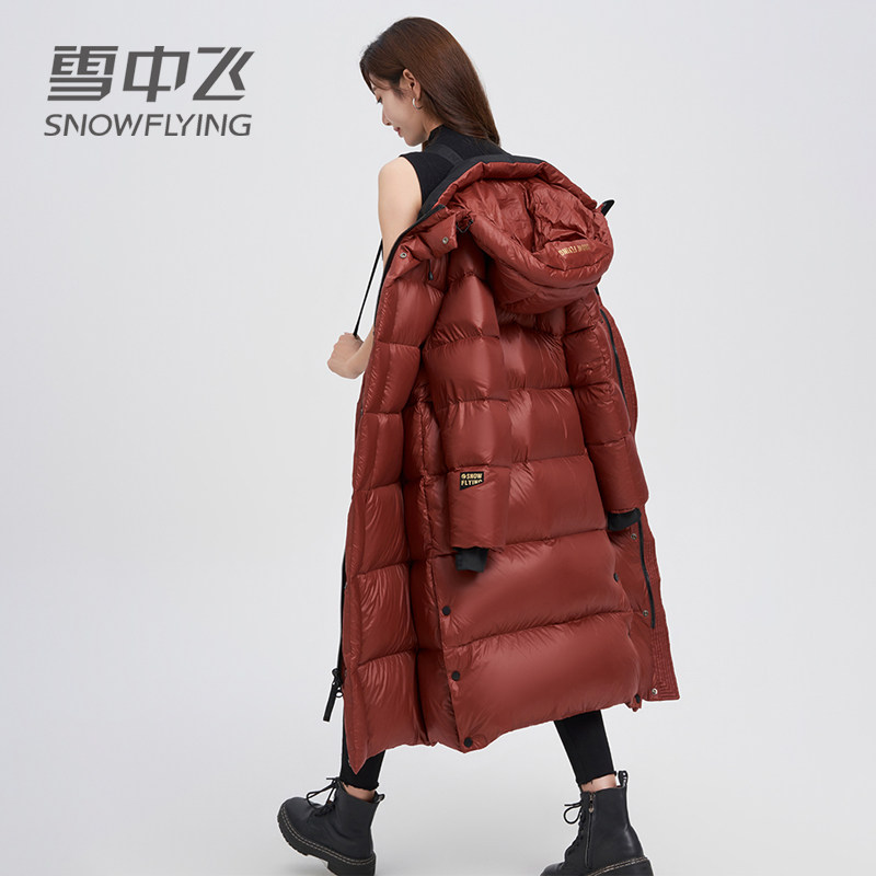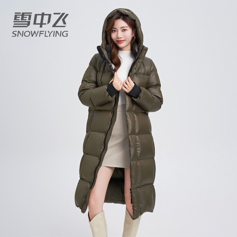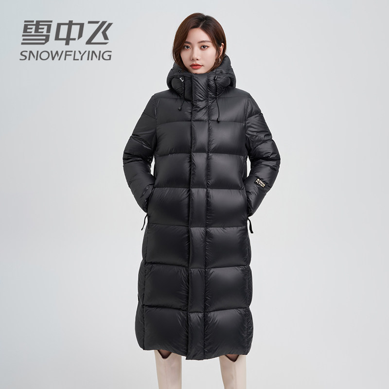 📚 雪中飞2025新款鹅绒服高端黑金男女同款长款加厚情侣连帽羽绒服冬