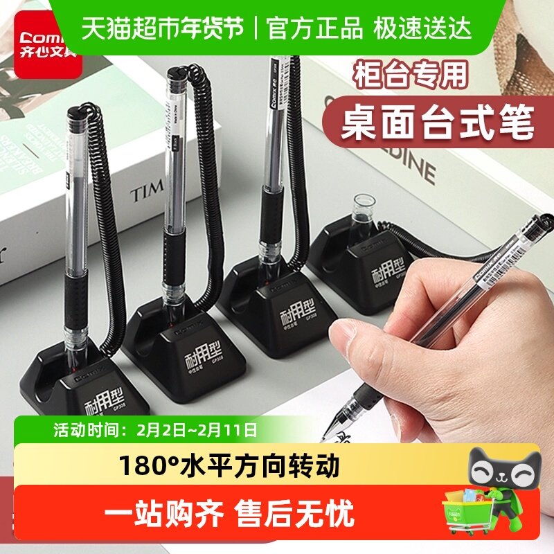 📚 齐心带绳台笔签字笔中性笔前台固定笔座粘在桌子上的笔柜台服务台