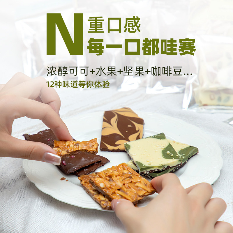 📚 纯可可脂手工巧克力薄脆坚果脆薄巧chocolate抹茶朱古力草莓创意