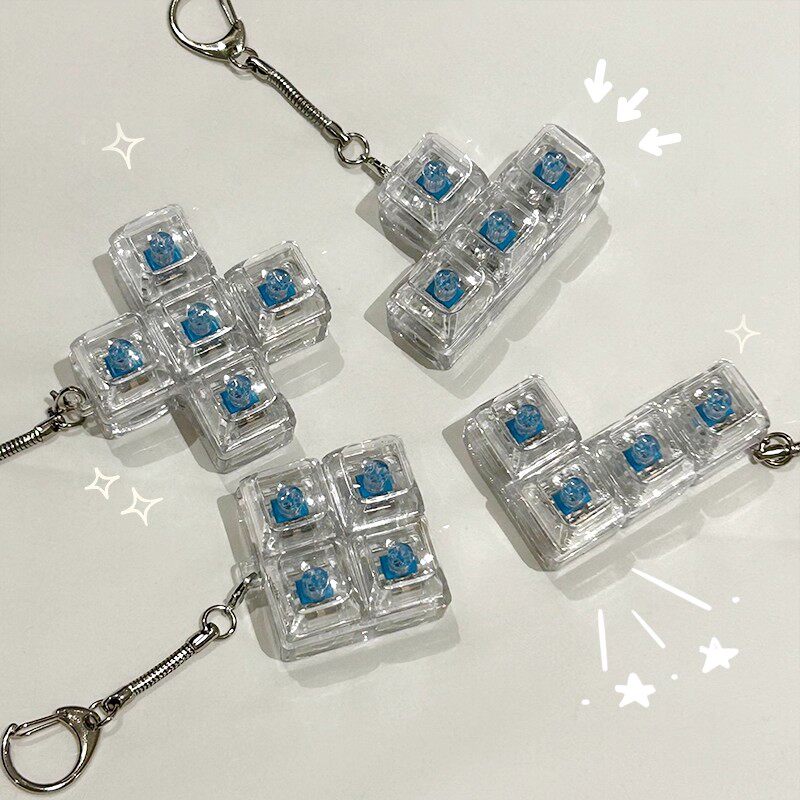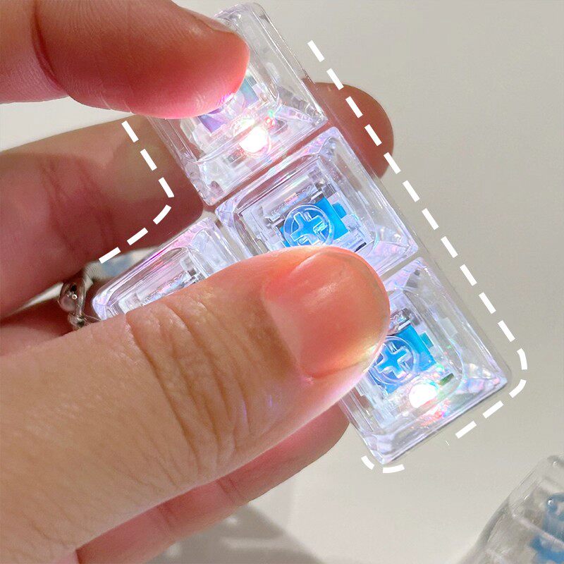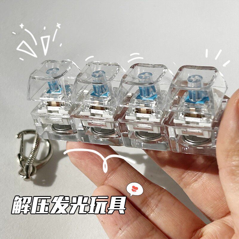 📚 解压发光带灯按键机械键盘钥匙扣挂件玩具高透光按键定制图案logo