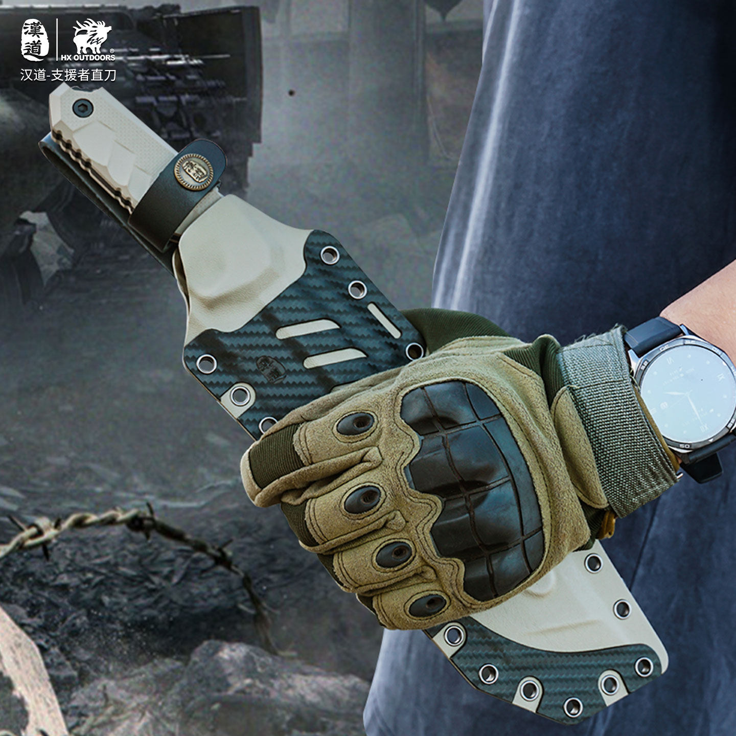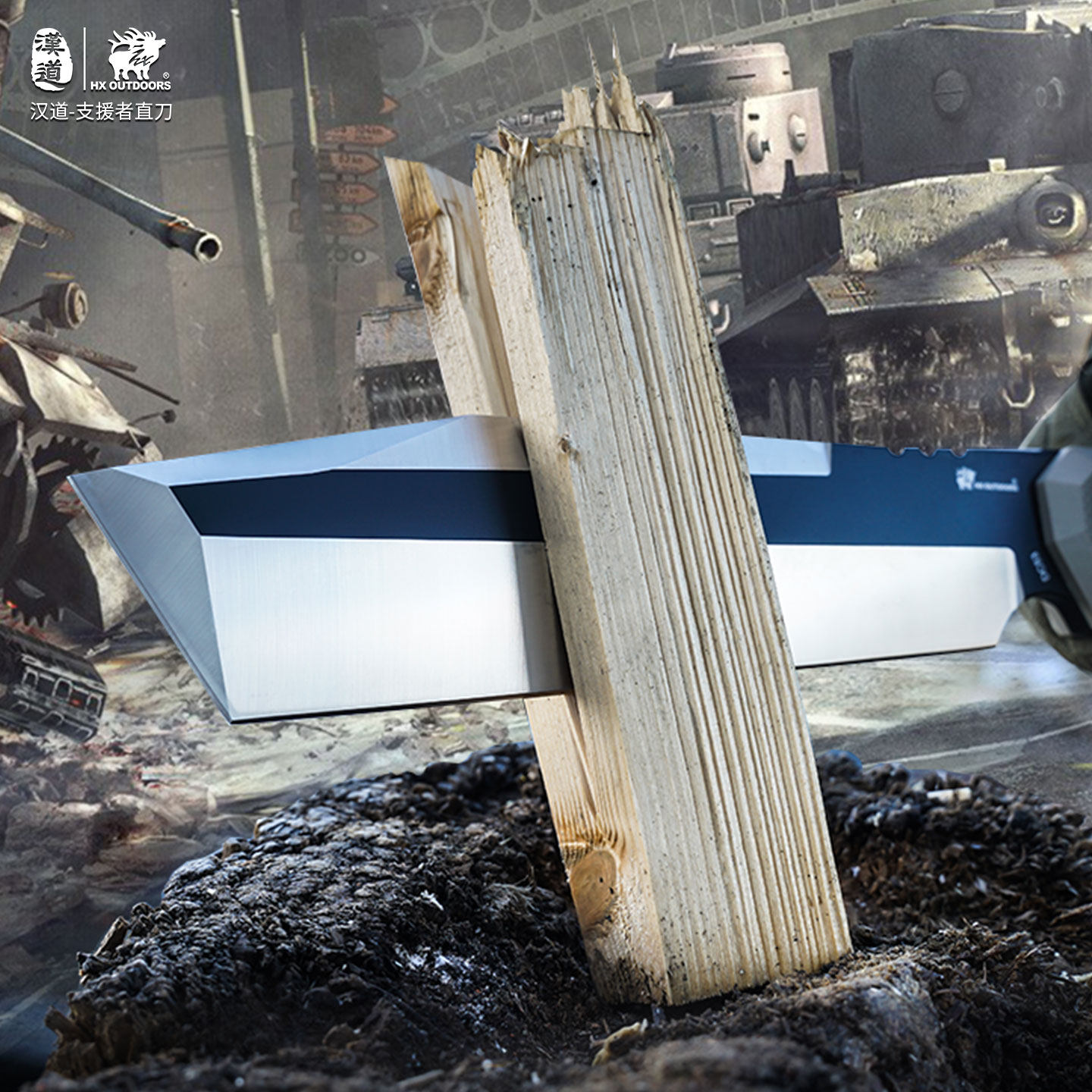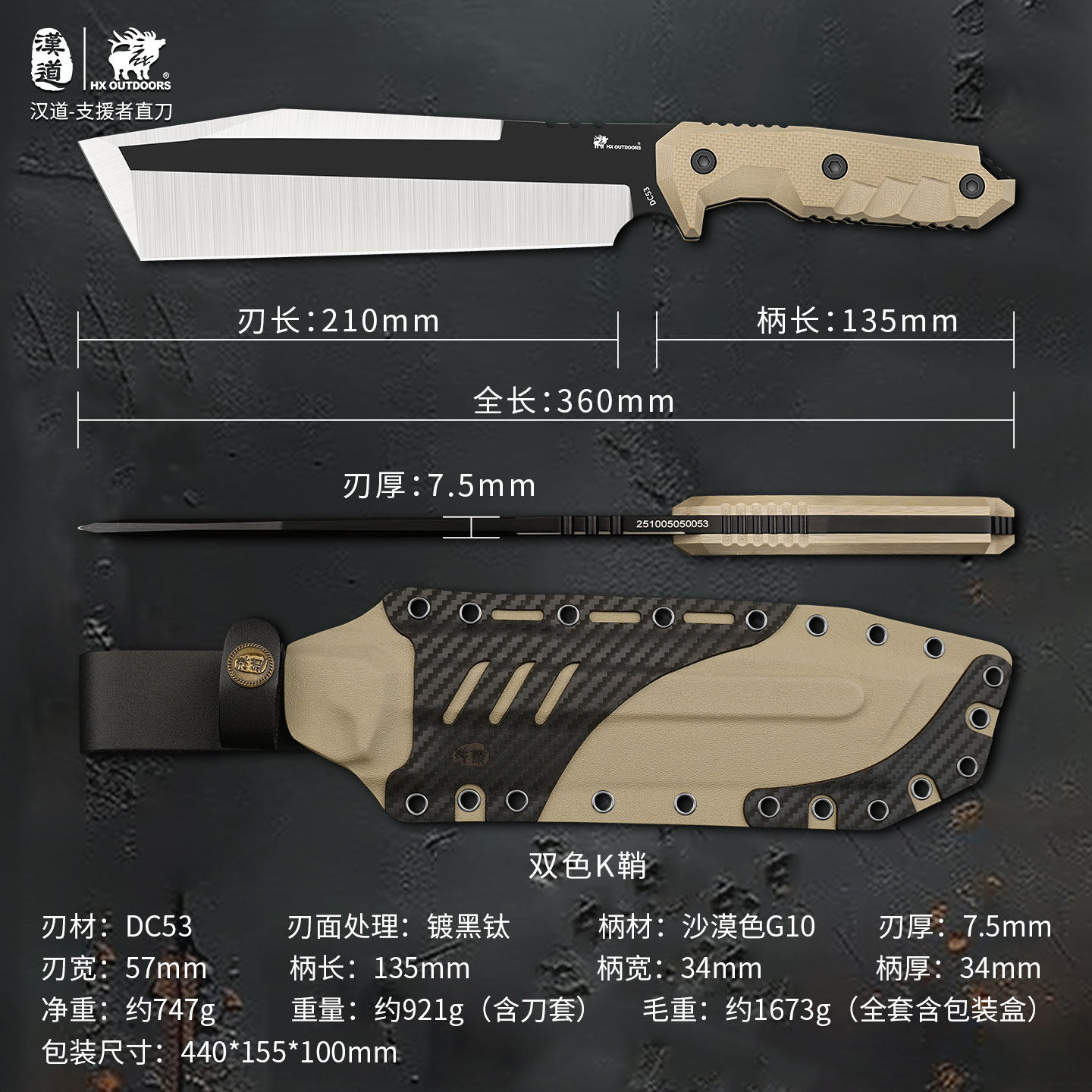 📚 汉道雇佣兵系列支援者战术户外排障刀砍柴刀砍骨刀dc53钢一体龙骨