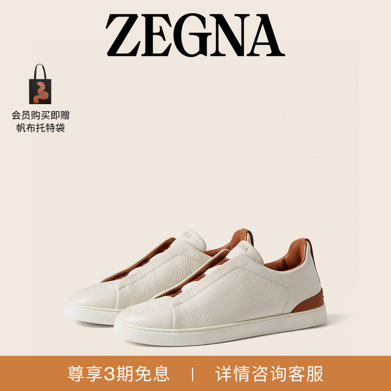 📚 ZEGNA杰尼亚男鞋米白色鹿皮Triple Stitch™奢华休闲鞋