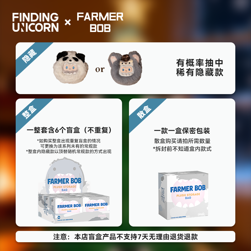 📚 寻找独角兽 FARMER BOB绒绒头零钱包盲盒 潮玩挂件摆件送礼搭配
