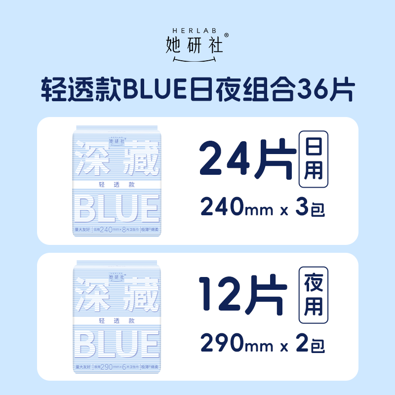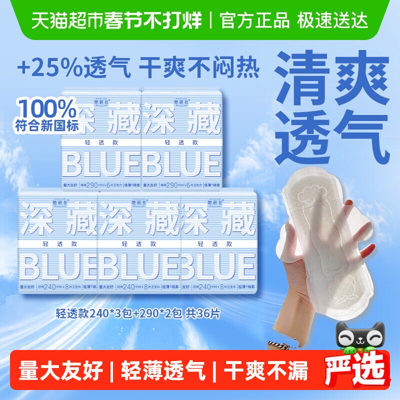 📚 她研社卫生巾姨妈巾深藏BLUE轻透款超薄透气日夜组合5包36片
