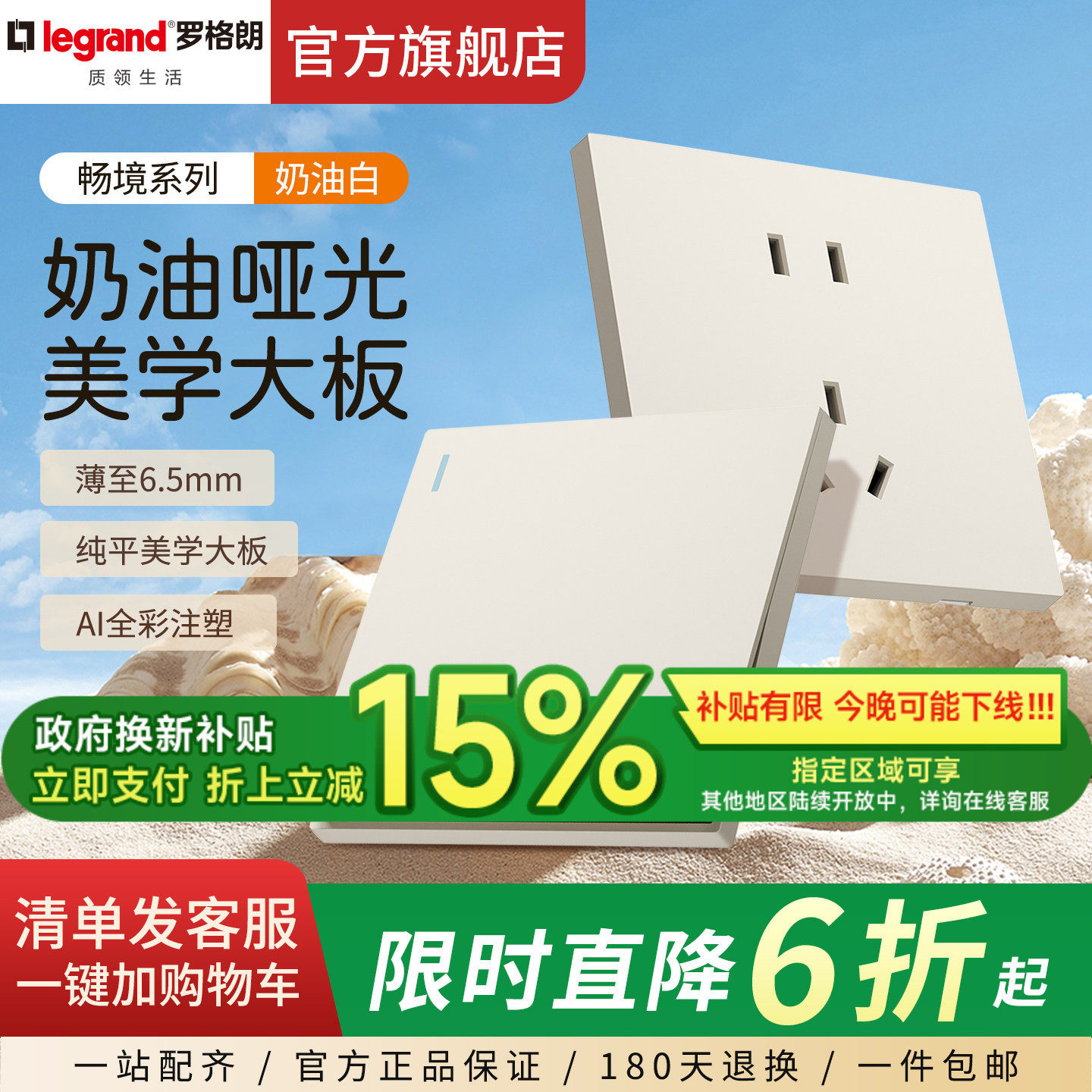 📚 罗格朗开关插座面板畅境奶油白一开5五孔带usb四孔暗装86十大品牌