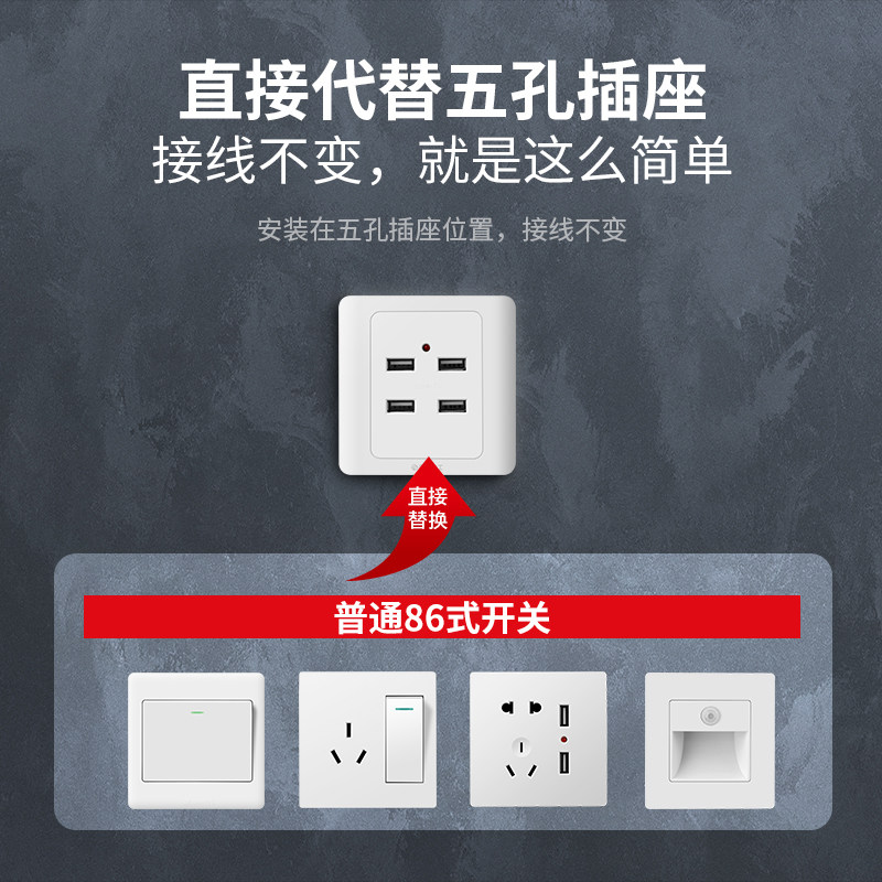 📚 86型四位USB插座面板36V转5V四孔4个usb充电工地墙壁低压220V转5V