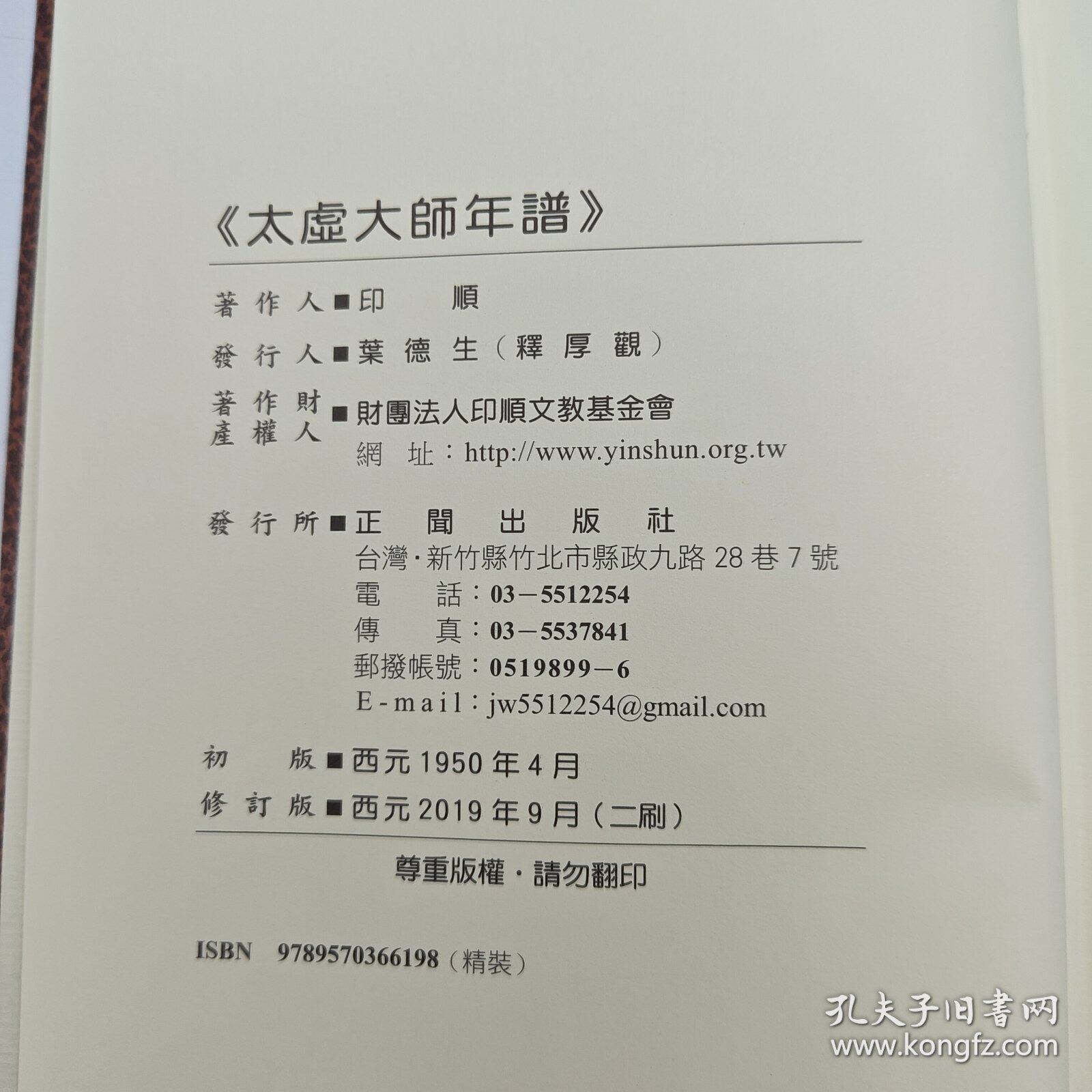 📚 【港台原版】太虛大師年譜 (精)2019年9月版 台湾正闻版 印顺 /正版现货