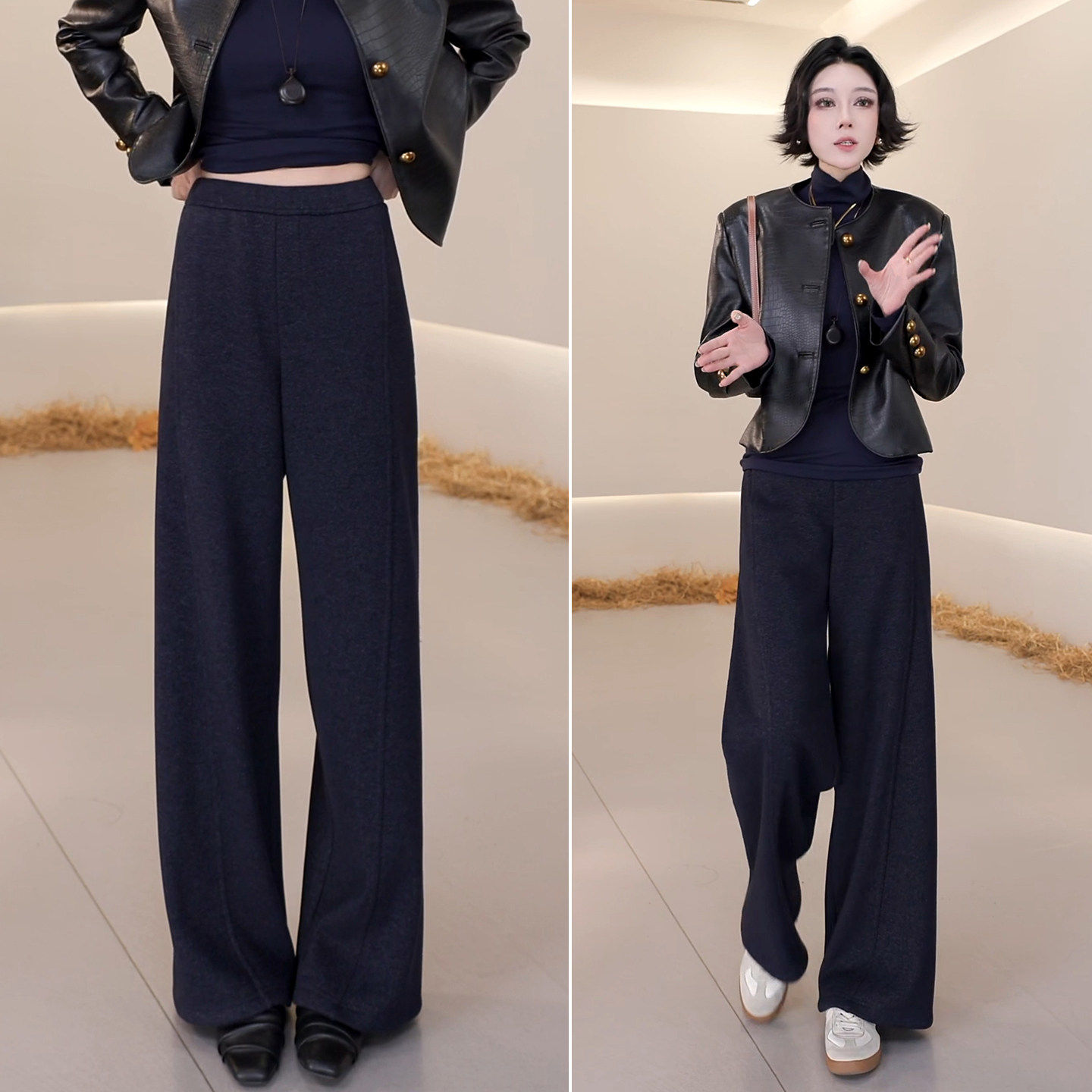 📚 羊毛裤子2025新款今年流行爆款高腰直筒休闲裤女秋冬加绒阔腿长裤