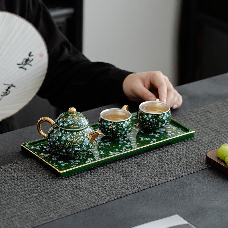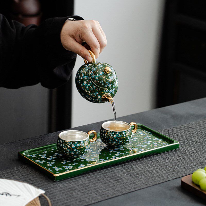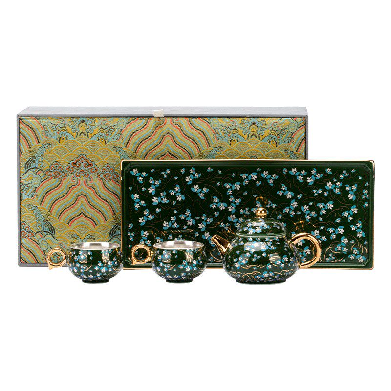 📚 鎏银金银花茶壶 功夫茶具套装中式陶瓷描金银Q茶杯一壶两杯礼盒装