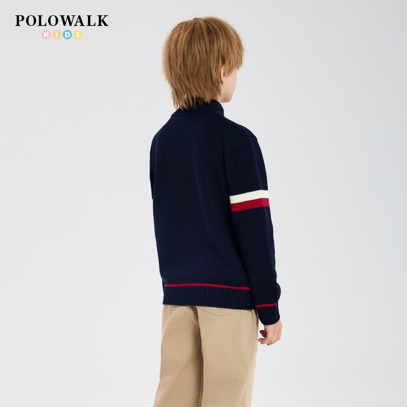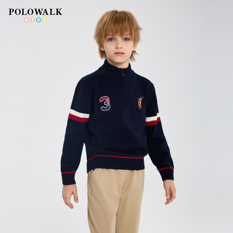 📚 POLOWALK童装男童半高领拉链毛衣秋季新款保罗儿童套头针织衫上衣