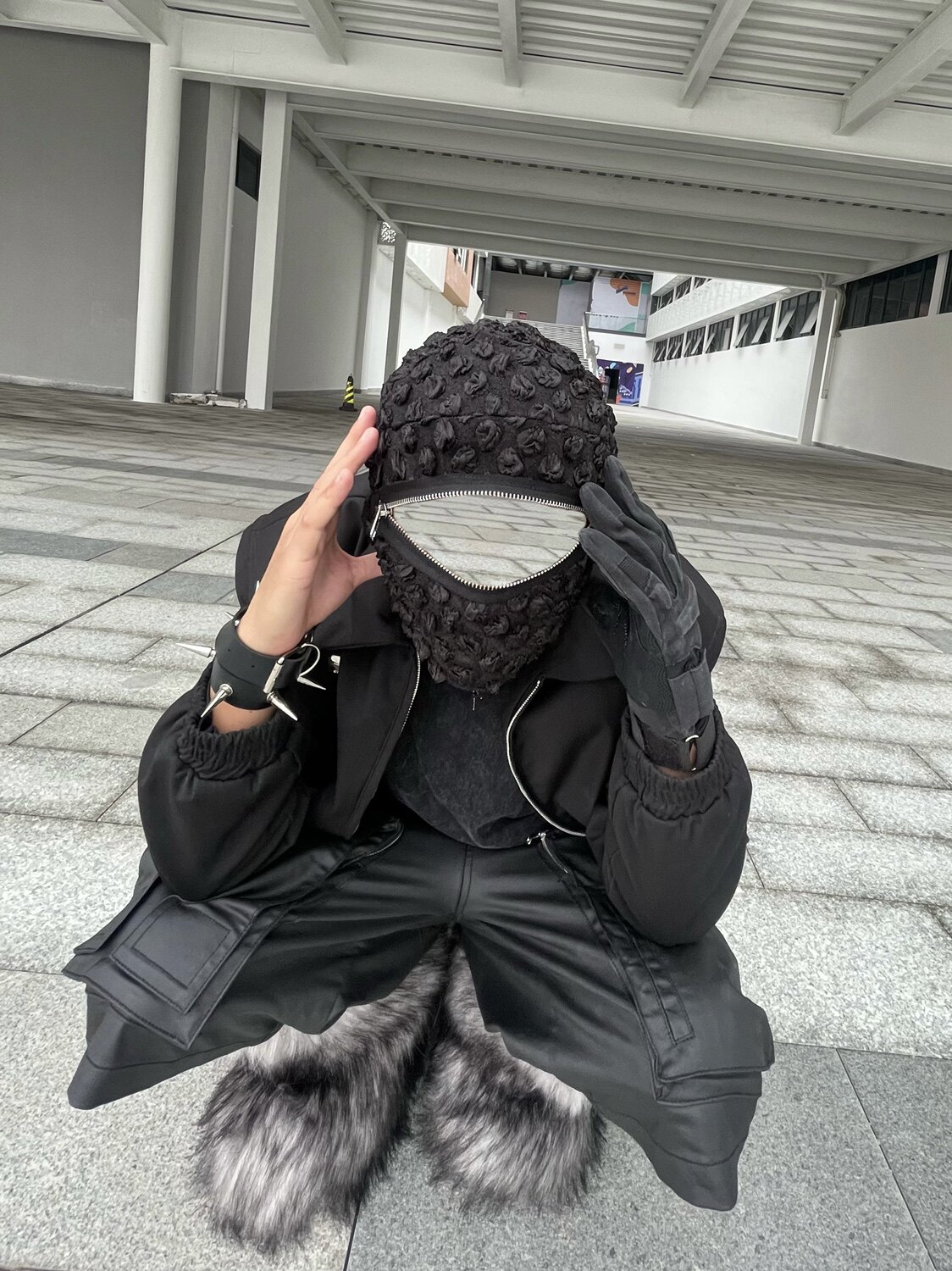 📚 Without Me/SUC 先锋暗黑铆钉防风户外面罩针织纹理drill冷帽头套