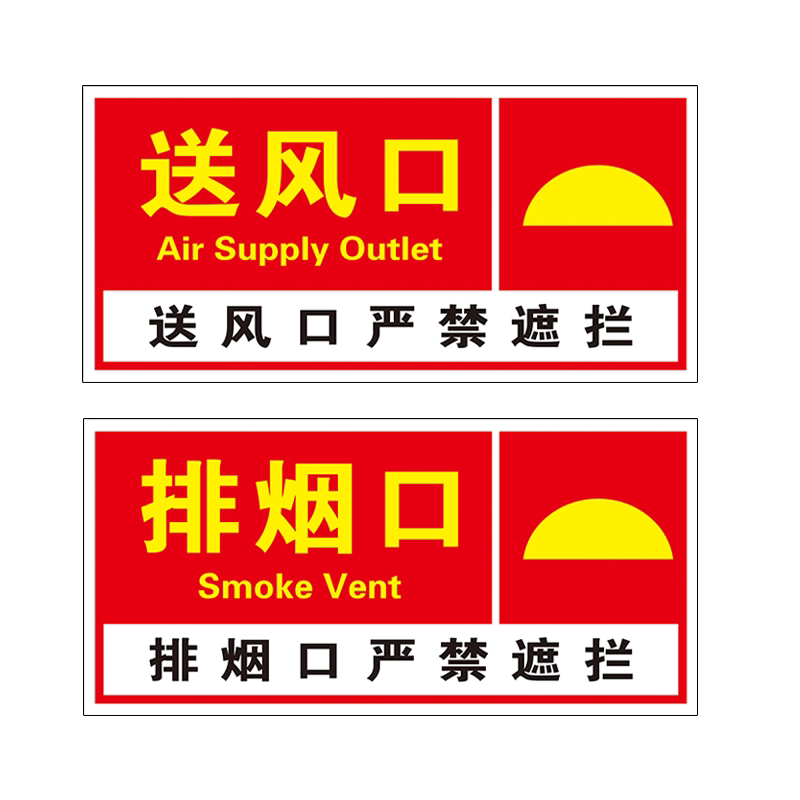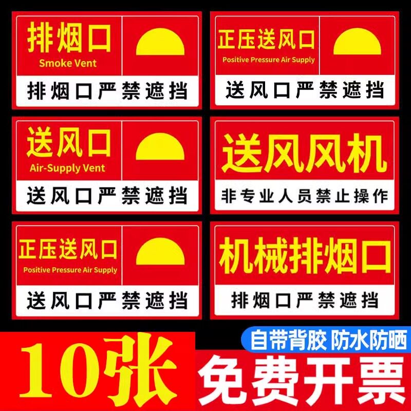 📚 消防排烟口标识牌贴纸机械正压送风口提示牌墙贴机房出风口防火阀风机严禁遮挡标示牌警示牌标志指示牌定制