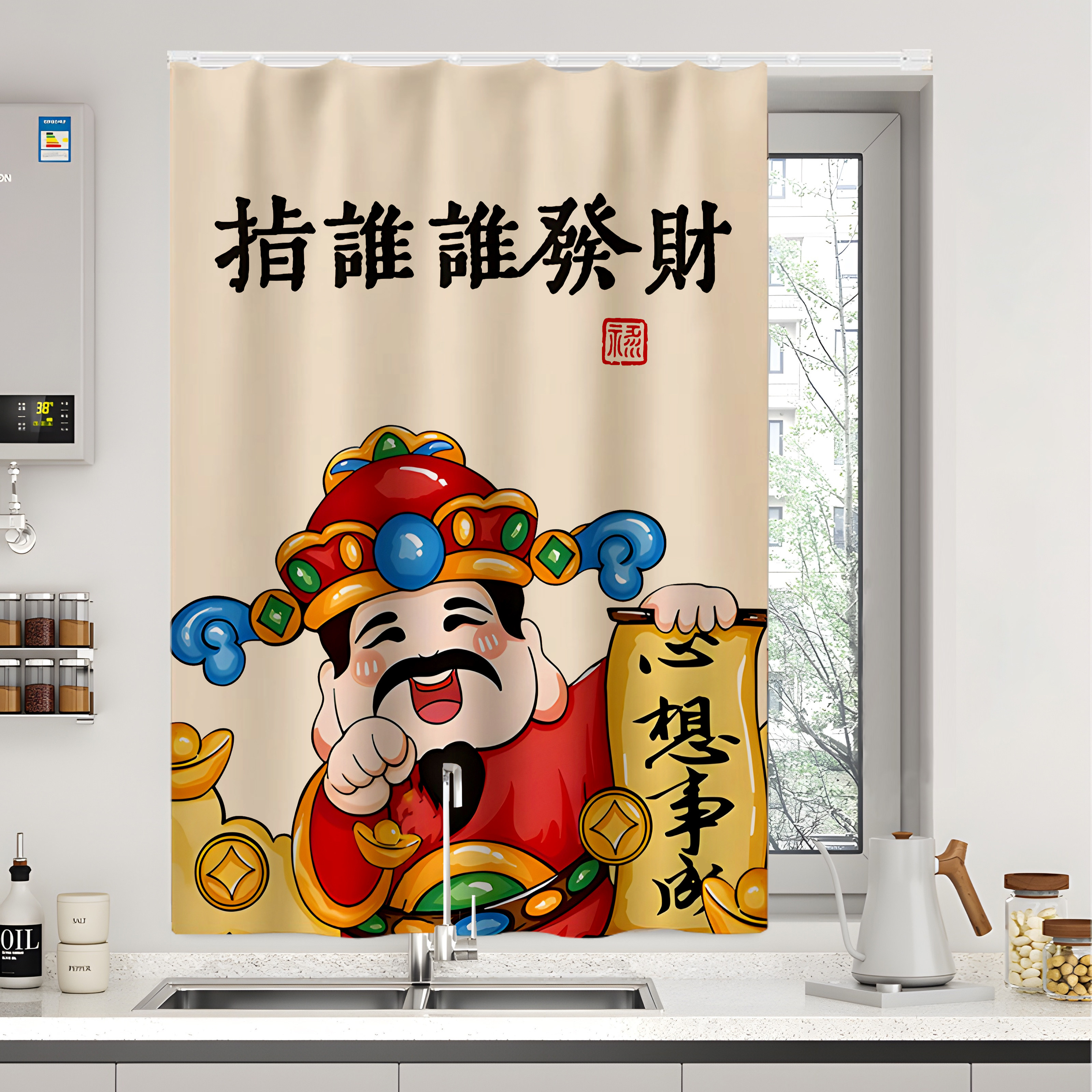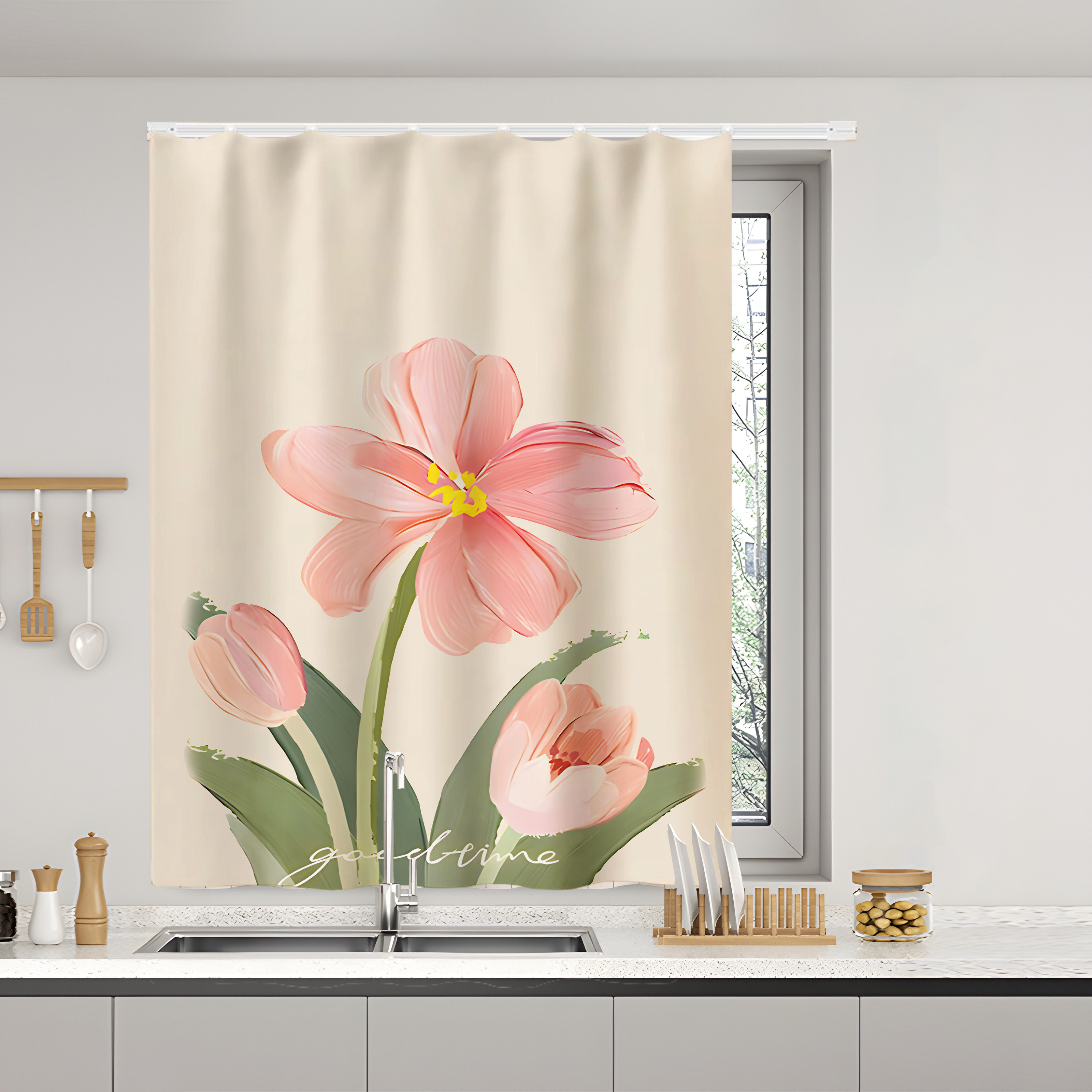 📚 厨房防水防油烟遮光窗帘门帘免打孔滑轨浴室卫生间小窗户遮挡帘子