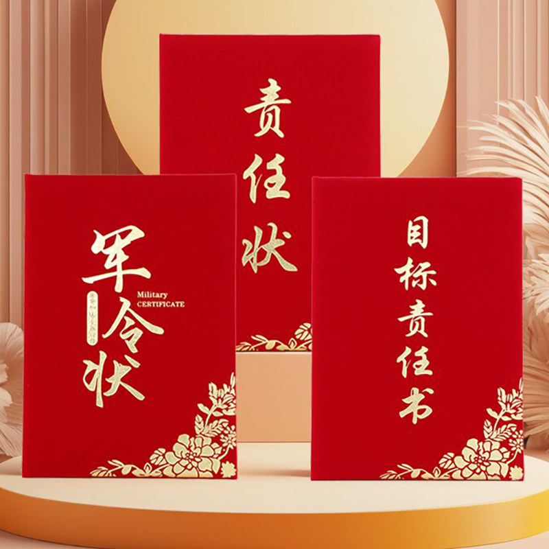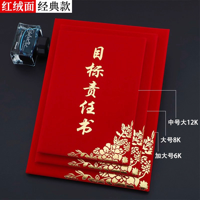 📚 红绒面目标责任书绩效责任状军令状挑战任务书证书A4定制封面定做外壳烫金绒布封套内页内芯可打印送内芯