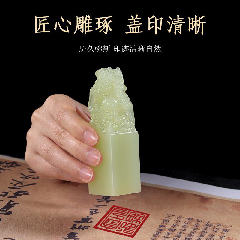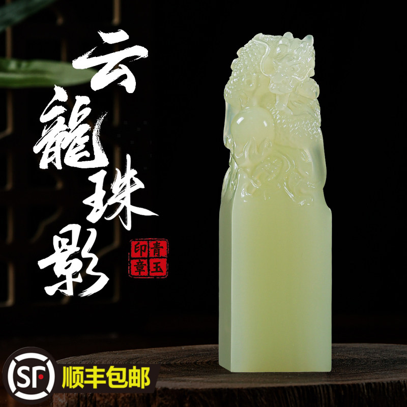 📚 天然云南青玉石印章h定制生肖龙戏珠姓名印章篆刻字书画藏书个人
