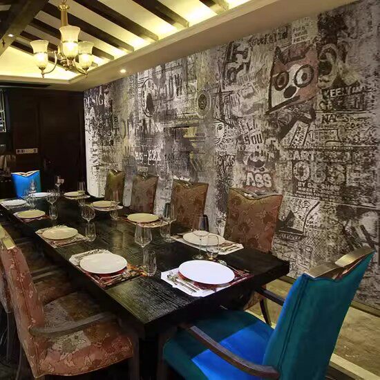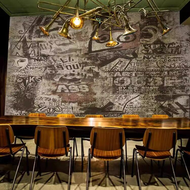 📚 复古怀旧涂鸦砖墙壁纸咖啡厅服装店酒吧壁画水泥墙餐厅烧烤店墙纸