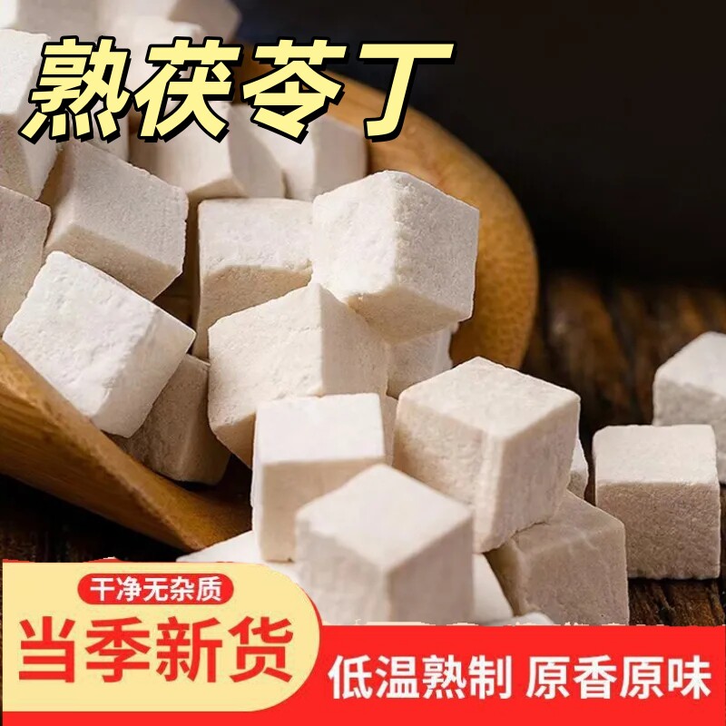 📚 熟茯苓丁打豆浆烘焙炒熟白茯苓切块即食原味煲汤冲泡水茯苓干磨粉