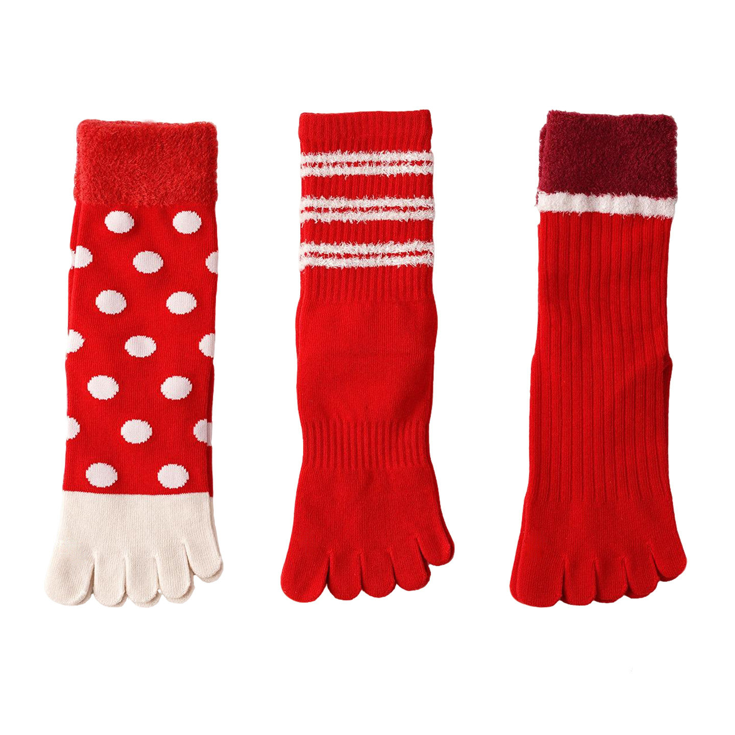 📚 内田新年喜庆大红本命年五指袜纯棉中筒结婚马年女袜新年鸿运穿搭