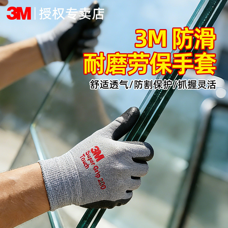 📚 3M劳保手套工作保护户外作业防切割舒适透气车间工地干活搬运专用灵敏轻便防滑耐磨丁腈浸胶涂掌工业防护手套