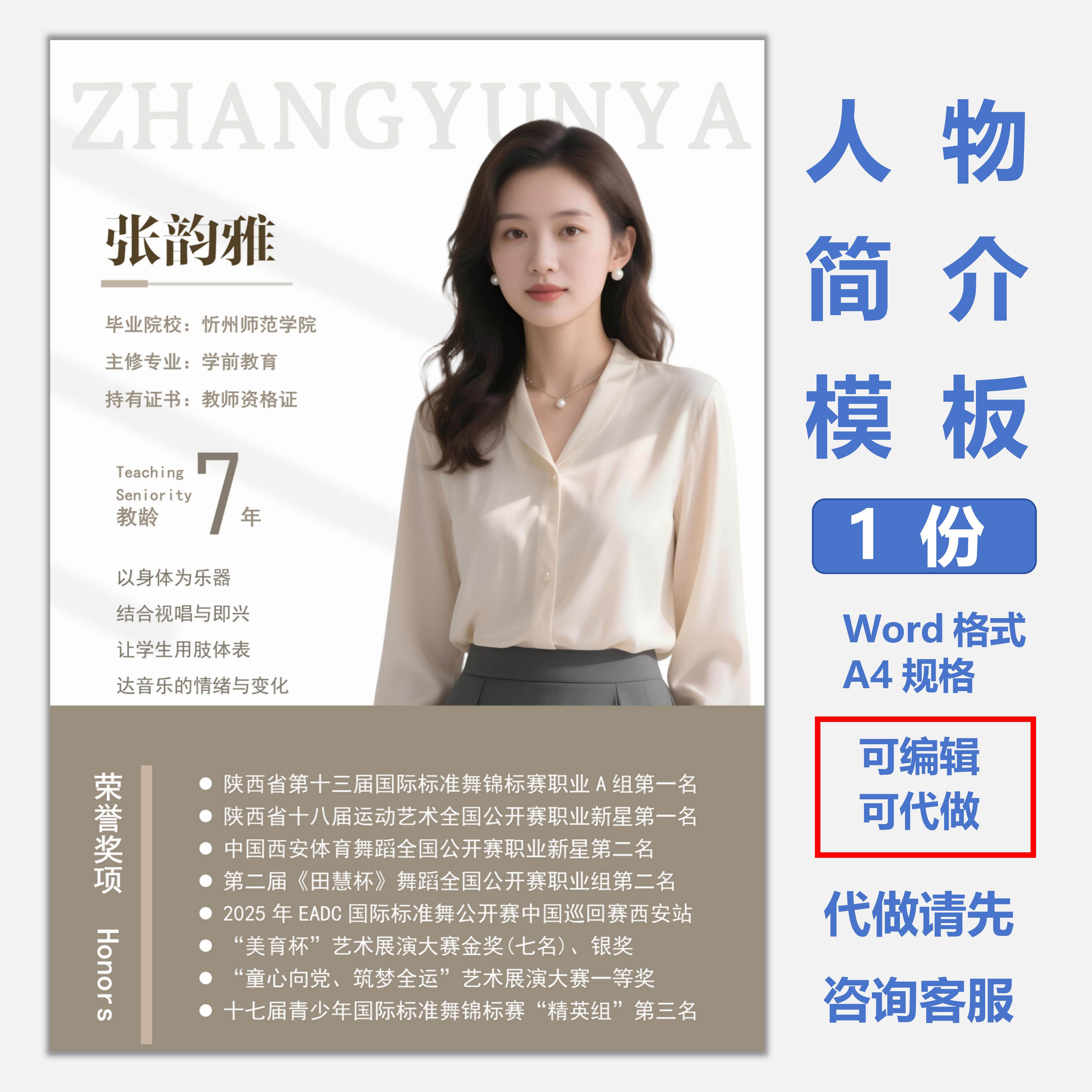 📚 教师简介海报模板老师简历个人风采教育格言宣传栏制作word格式