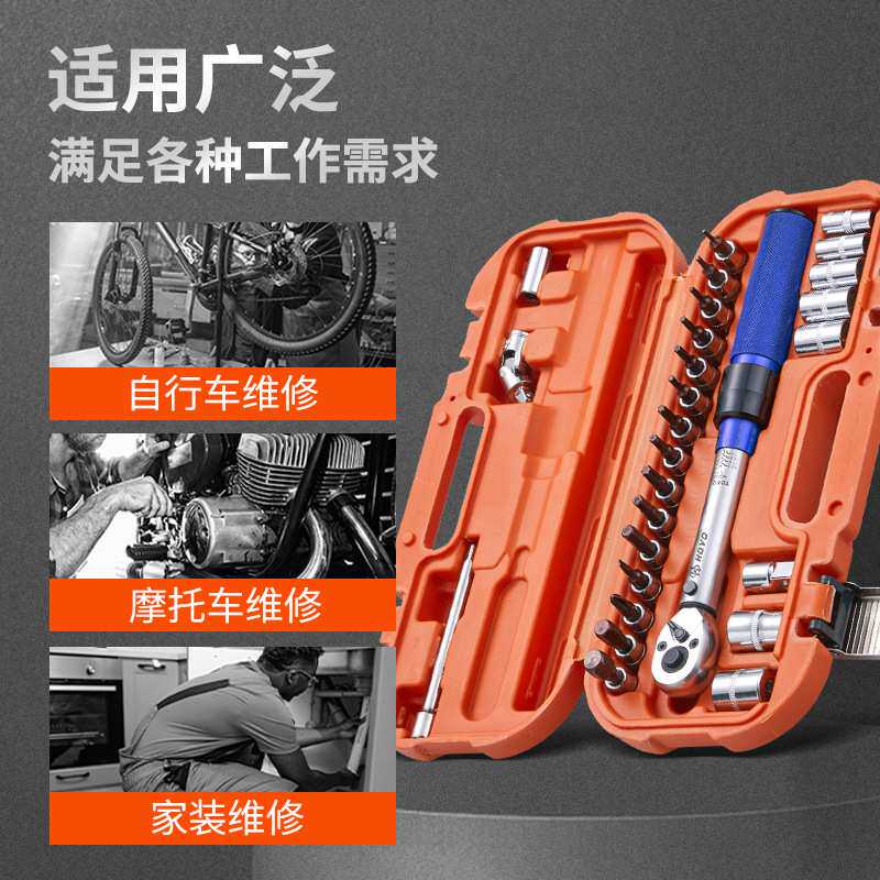 📚 HOYO28件套扳手自行车预置快速公斤可调扭力矩套装维修大定扭棘轮