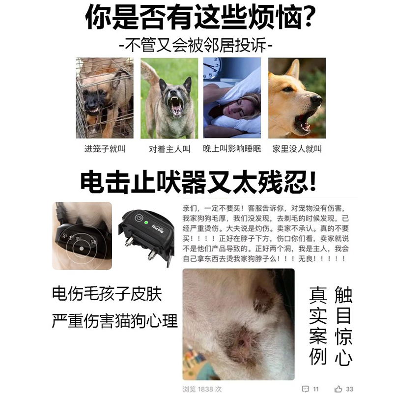📚 狗用防叫神器超声波止吠器自动止吠狗防叫器防叫扰民神器电击项圈