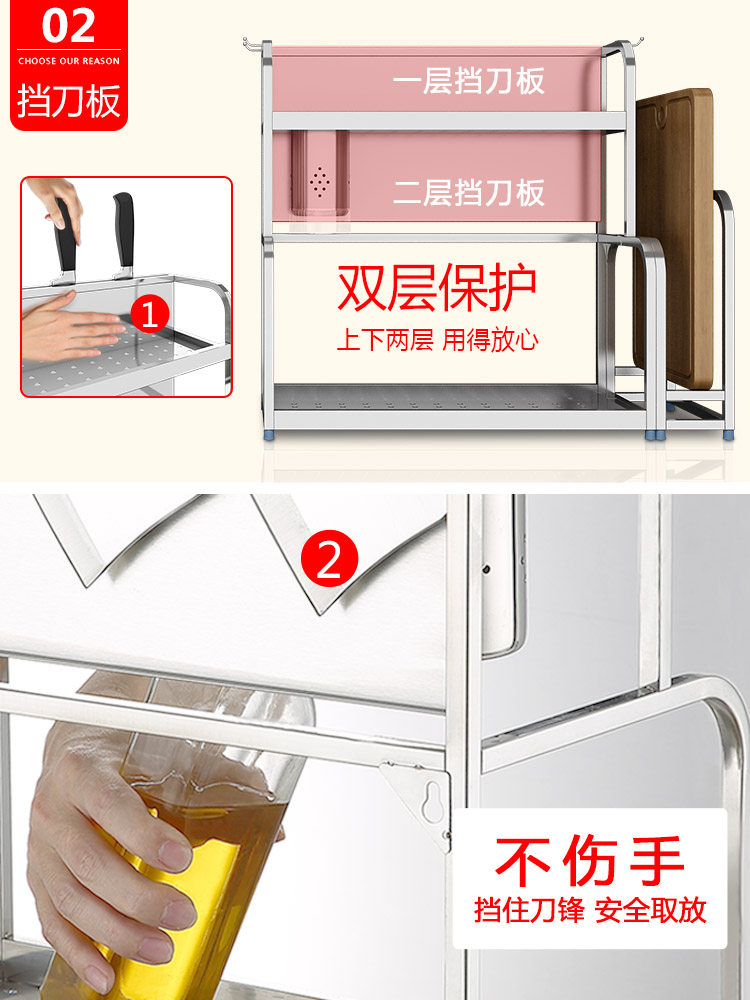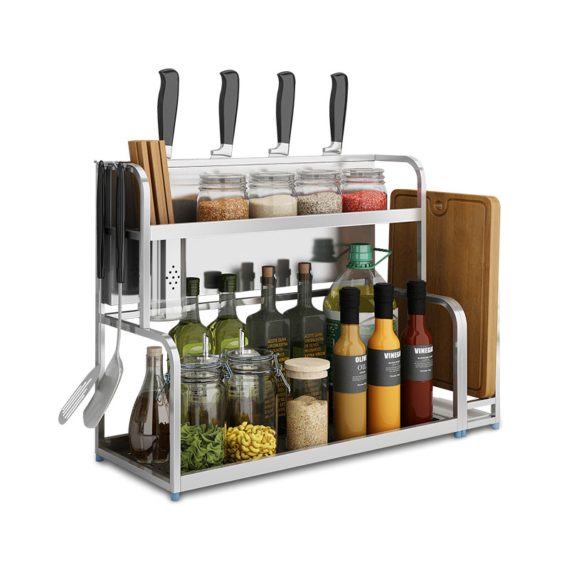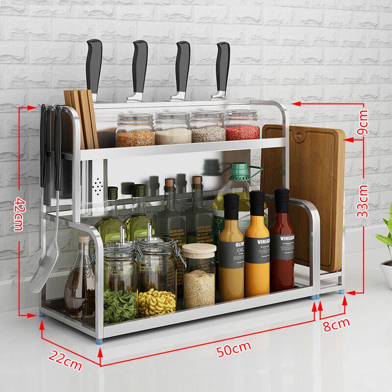 📚 304不锈钢厨房置物架壁挂落地双层刀架用品收纳2层调味品调料架子