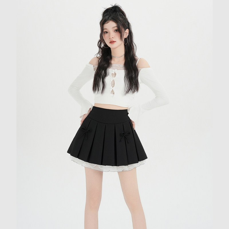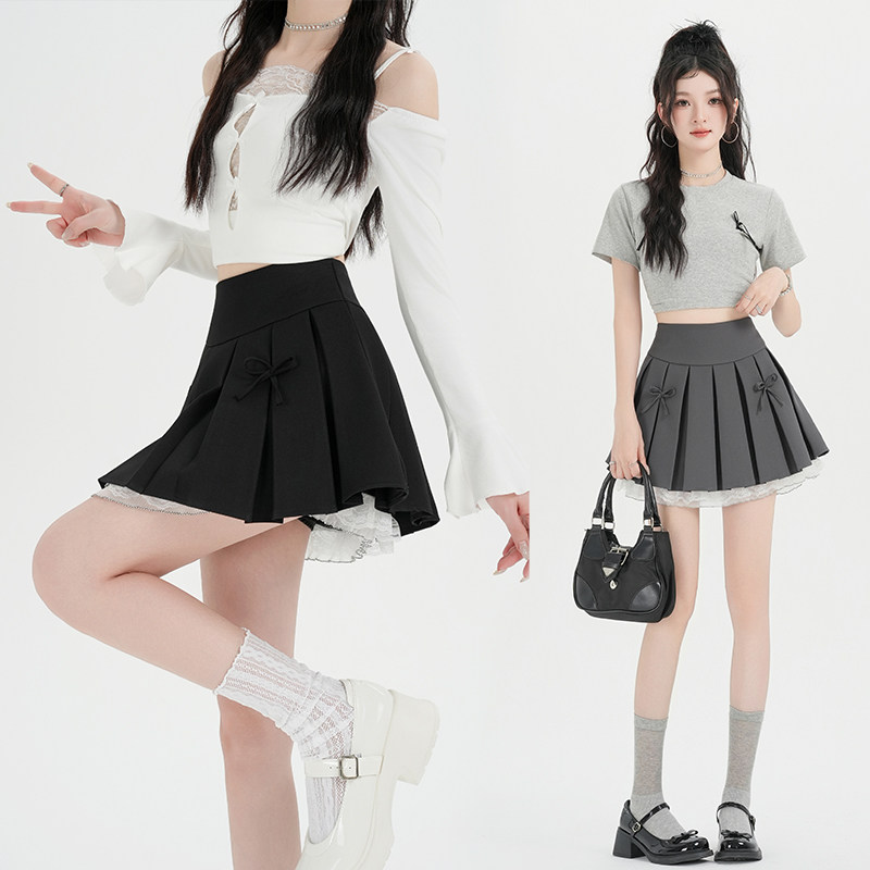 📚 学院风蝴蝶结百褶半身裙女2026春夏新款学生小众蕾丝拼接A字短裙