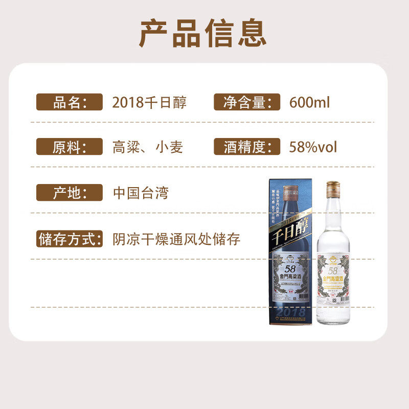 📚 金门高粱酒 千日醇2018年份 2015年份 58度高粱酒白金龙老酒600ml