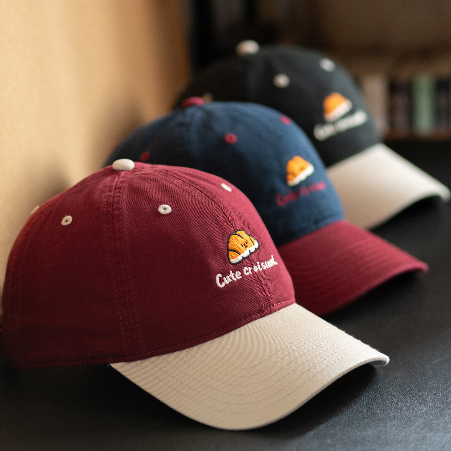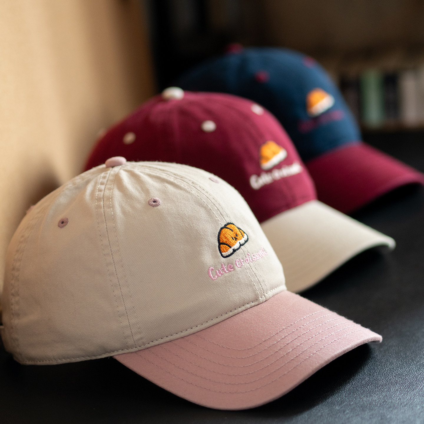 📚 白川美式复古撞色棒球帽女加大头围帽子可爱卡通刺绣牛角包鸭舌帽