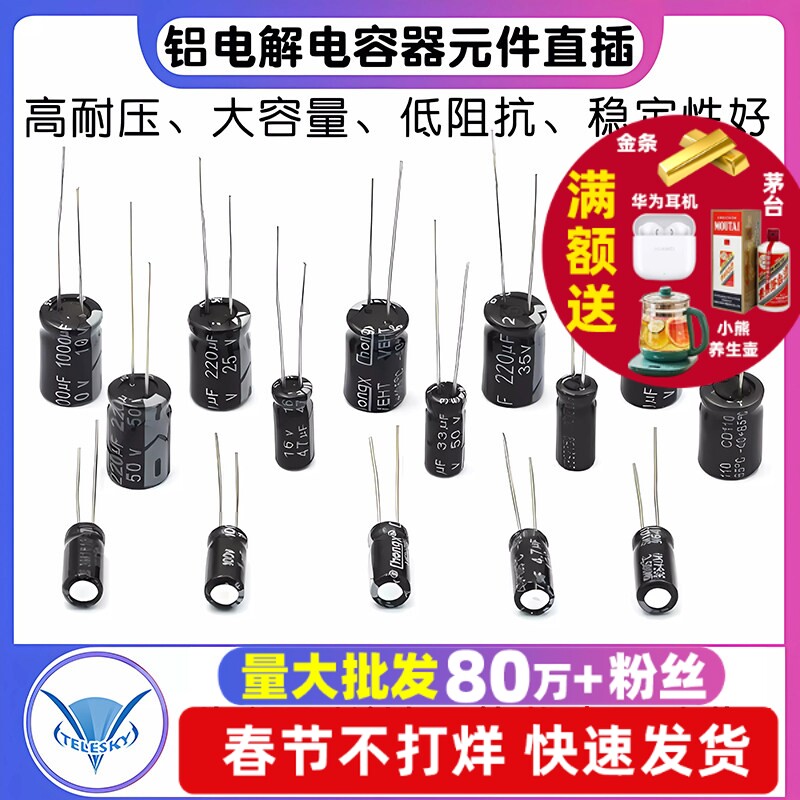 📚 铝电解电容器元件直插16v 25V 35V 50V 100V 1000uf 47UF 100UF