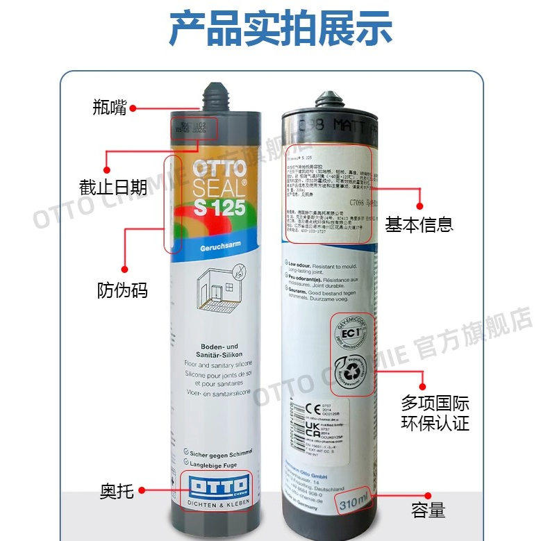 📚 德国OTTO S125奥托原装进口美容收边胶干区柜体踢脚线玻璃胶防霉