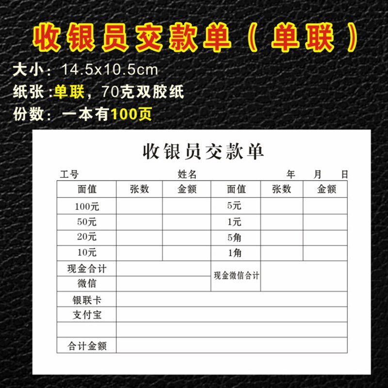 📚 收银员新款现金交款单二联缴款商场超市KTV酒吧酒店营业款定制