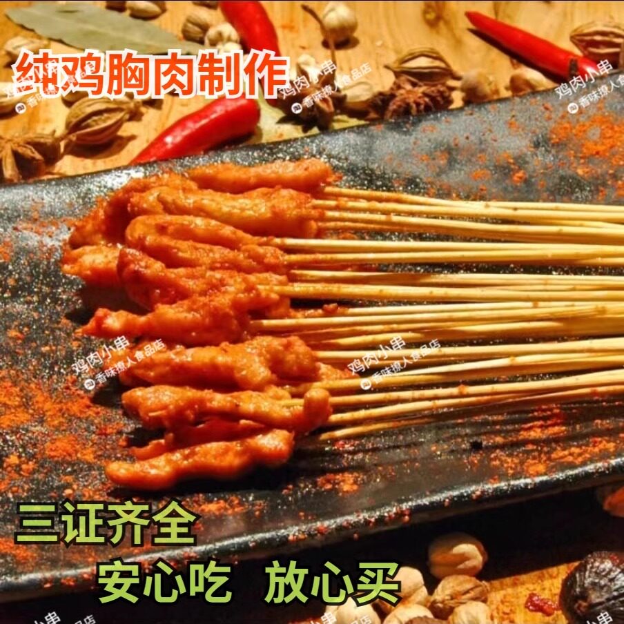 📚 鸡肉小串3000串烧烤油炸小肉串商用纯鸡胸肉手把串铁板半成品食材