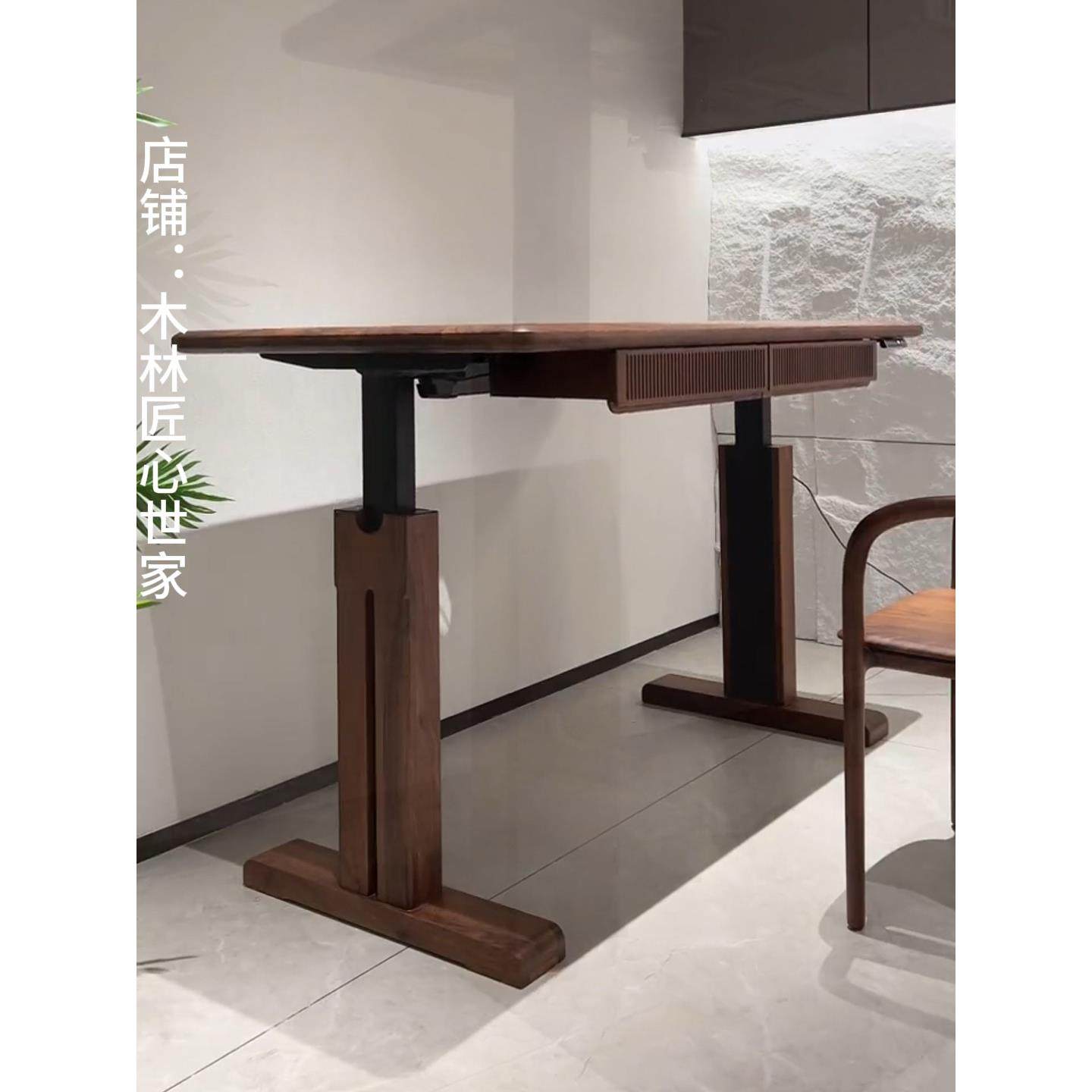 🎉「北美黑胡桃木静音电动升降台实木办公电脑桌」💻券后价仅542!办公新宠来啦!
