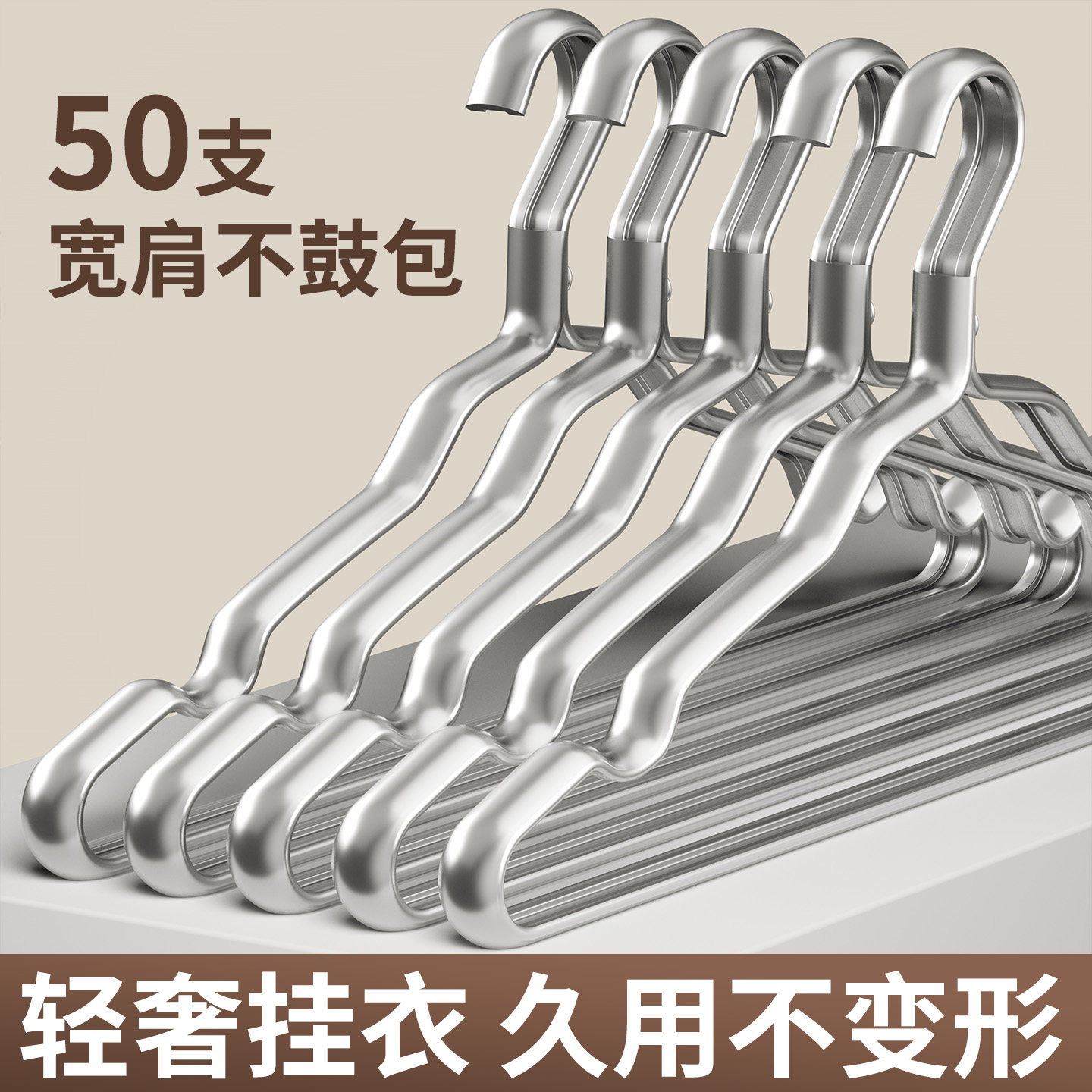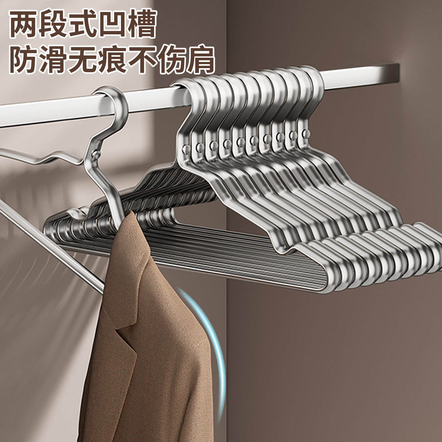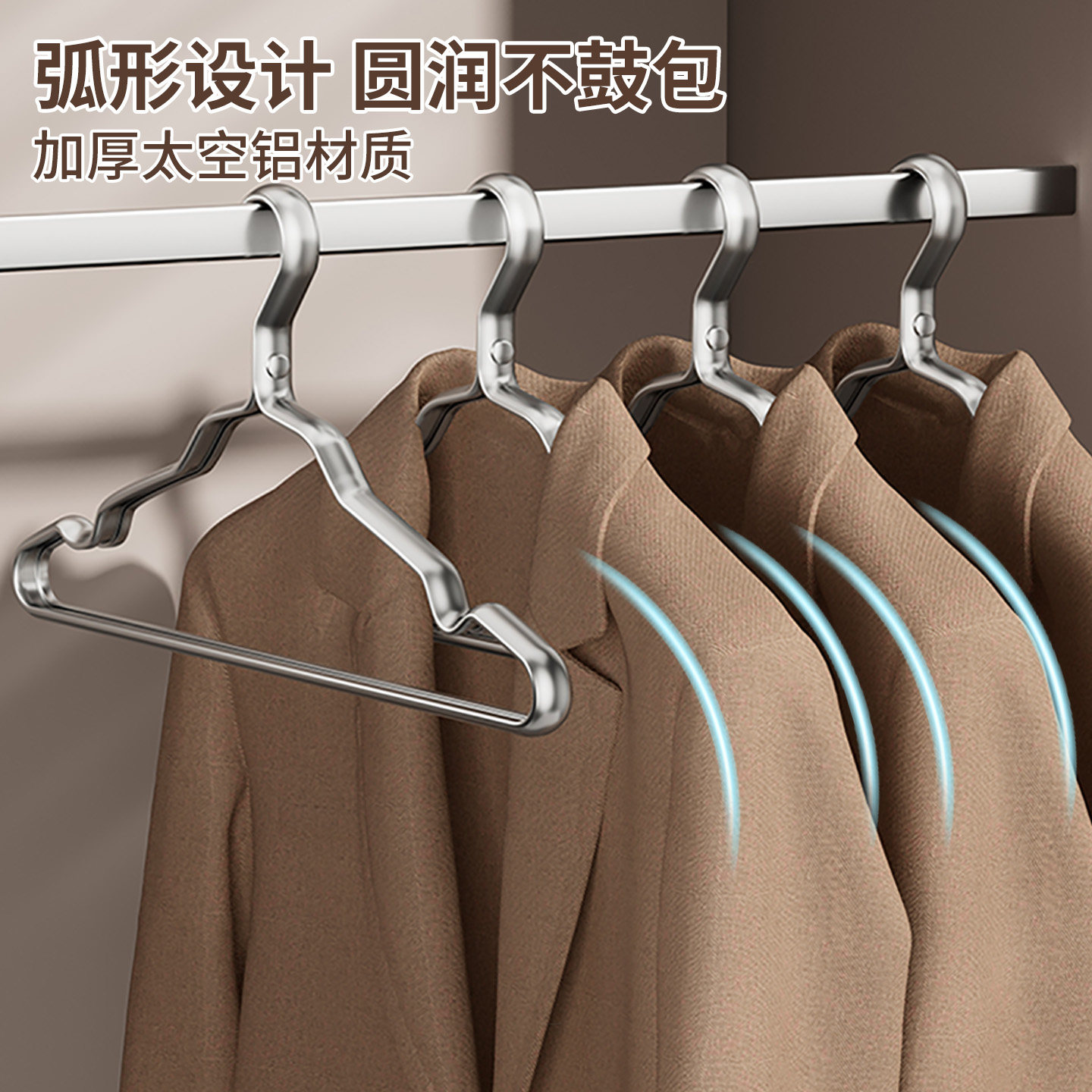📚 太空铝合金衣架加厚加粗不锈钢家用防滑无痕防肩角高级轻奢晾衣架