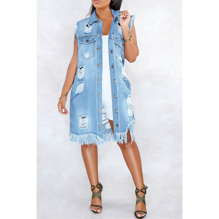 📚 牛仔长马甲女 Women's fringe denim vest jacket long waistcoat